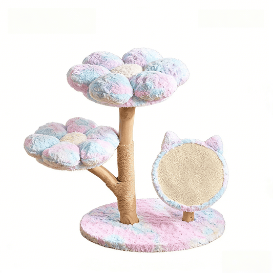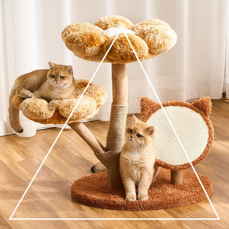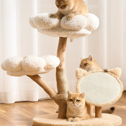 Choose a large, multi-level cat tree with sturdy, solid wood. It provides enough space and stability for multiple cats to play and rest.