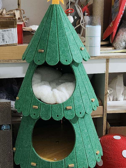 Modern cat tree in solid wood—cute, space-saving design for small spaces. Perfect cat tree for multiple cats with stylish, durable comfort.